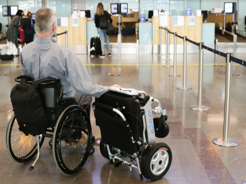 Dankzij moderne, voor vliegtuigen goedgekeurde accu's kunt u uw Eloflex ook in het vliegtuig inchecken.