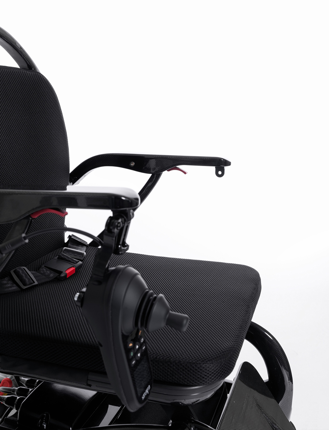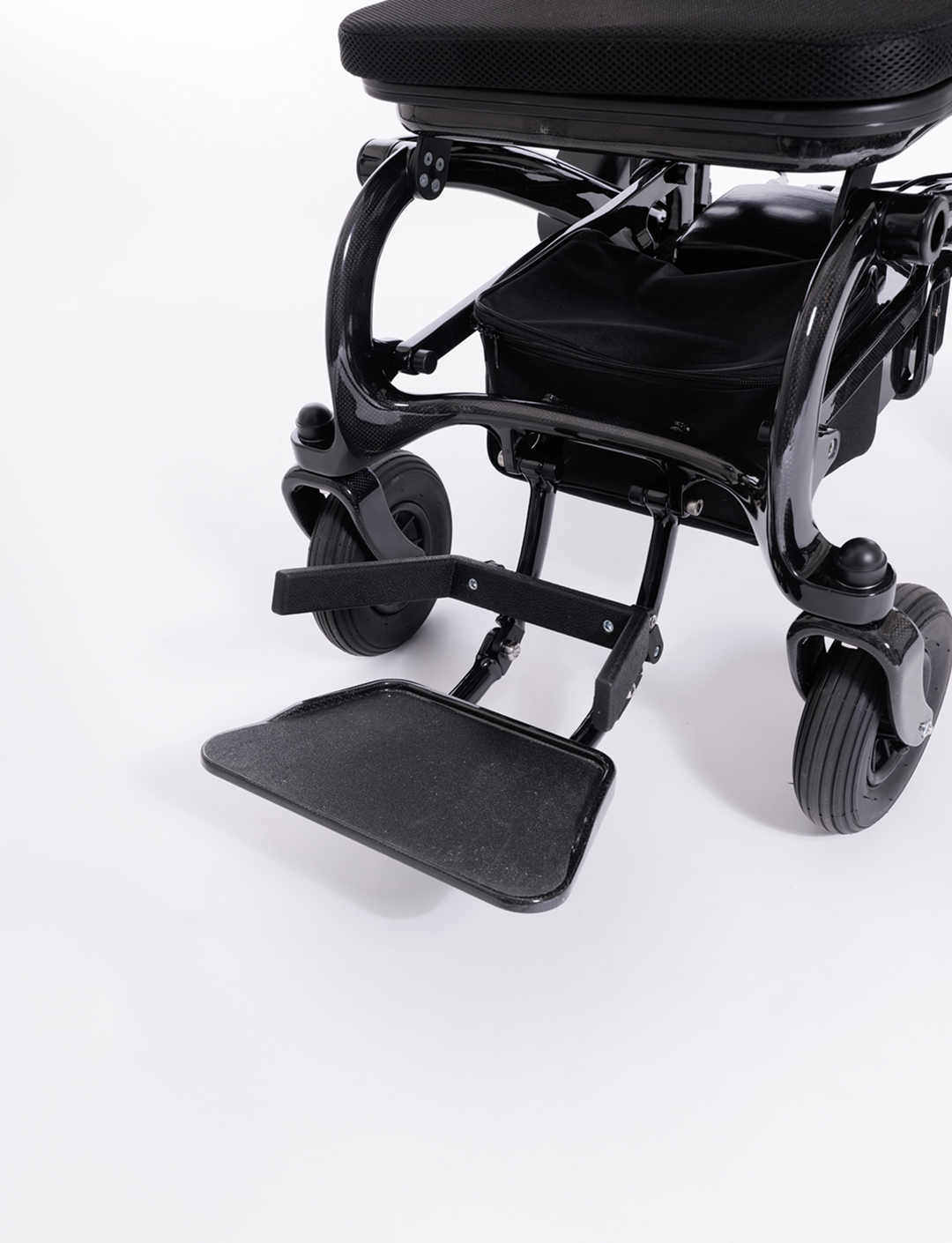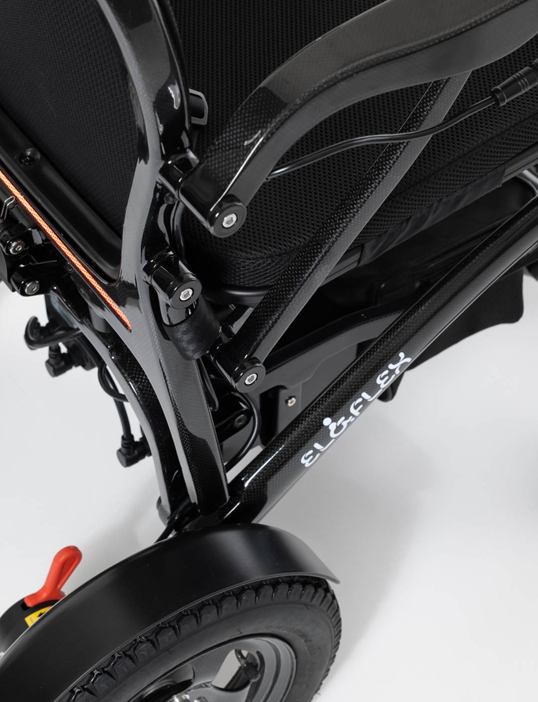 Koolstofvezel of carbon staat bekend om zijn ongelooflijke sterkte en is een geliefd materiaal in toepassingen zoals fietsen, auto's, boten, vliegtuigen en bouwtechniek. Waarom zouden we deze voordelen niet ook toepassen op elektrische rolstoelen? Ons koolstofvezel frame is niet alleen opmerkelijk licht, het is ook compromisloos duurzaam en zorgt voor een soepelere en aangenamere rijervaring.