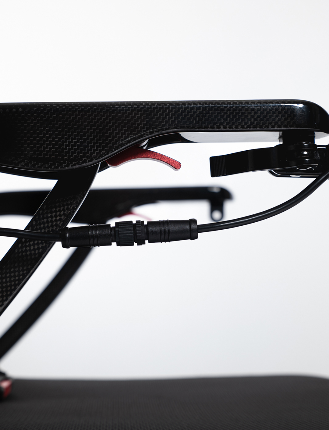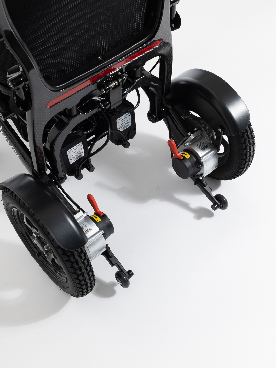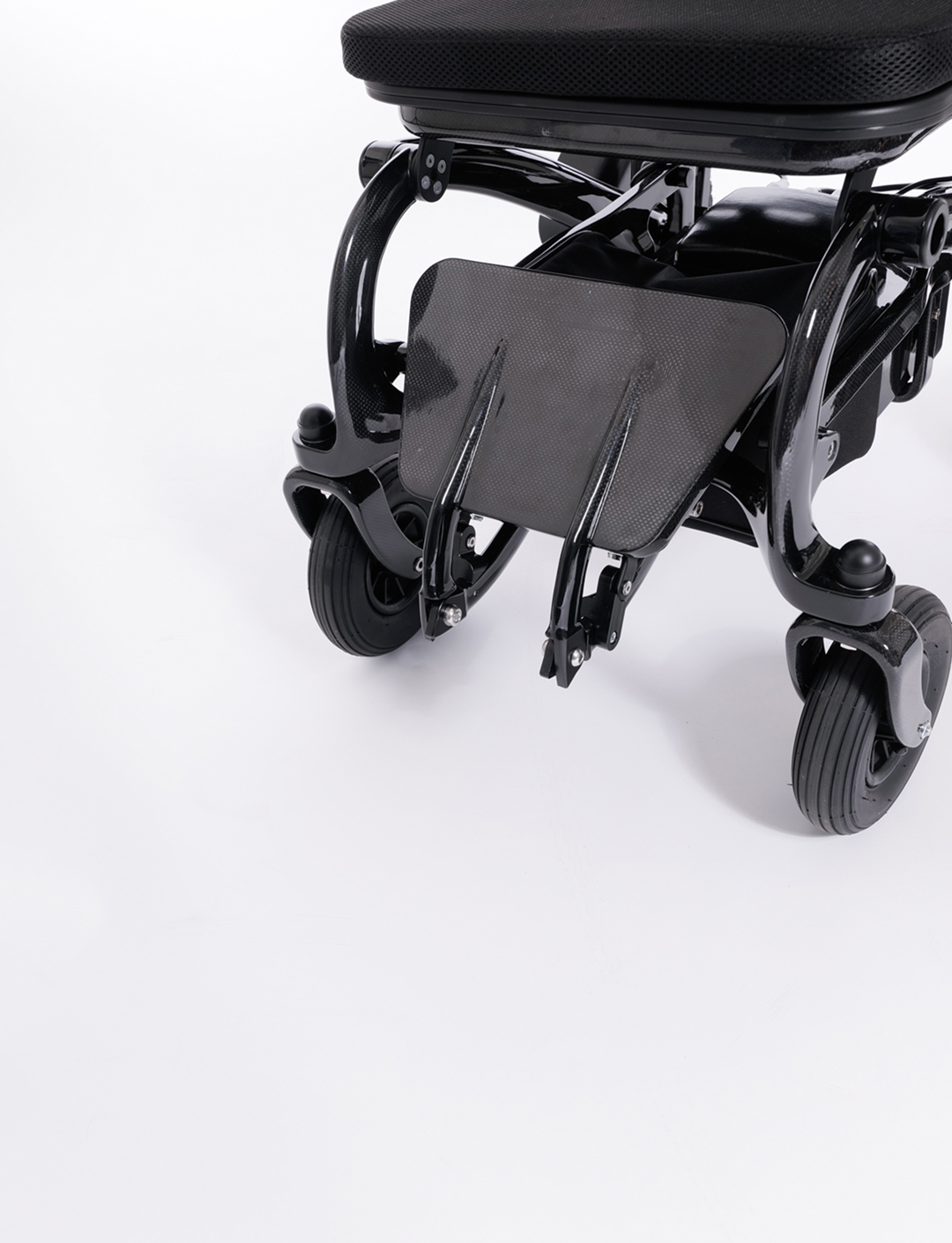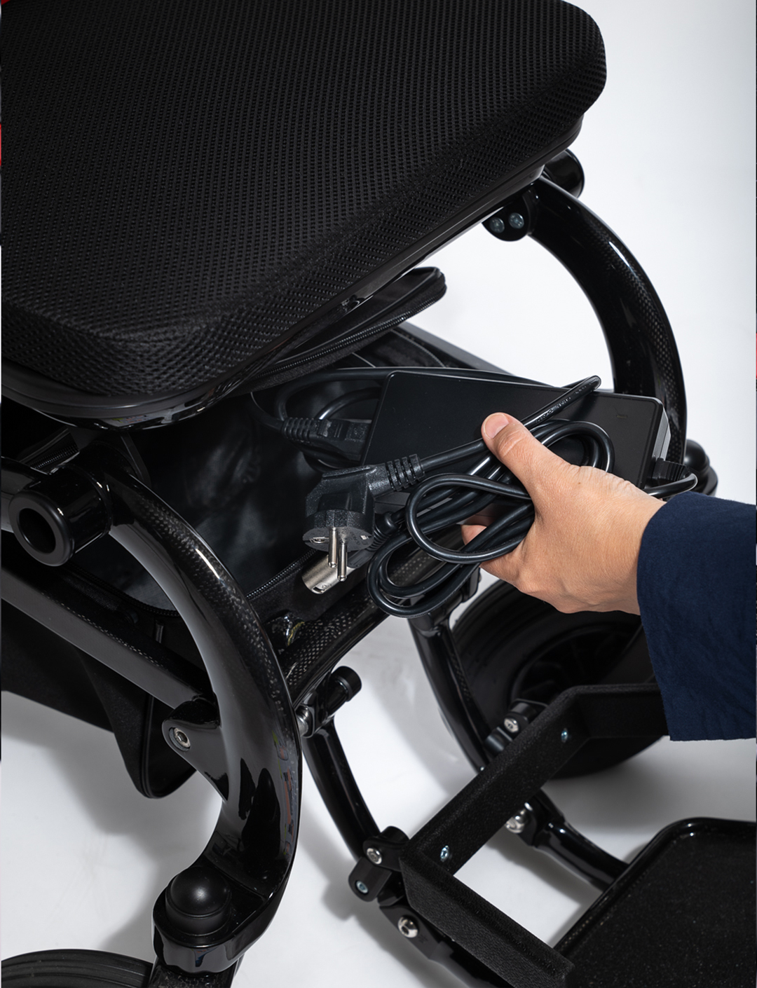 Koolstofvezel of carbon staat bekend om zijn ongelooflijke sterkte en is een geliefd materiaal in toepassingen zoals fietsen, auto's, boten, vliegtuigen en bouwtechniek. Waarom zouden we deze voordelen niet ook toepassen op elektrische rolstoelen? Ons koolstofvezel frame is niet alleen opmerkelijk licht, het is ook compromisloos duurzaam en zorgt voor een soepelere en aangenamere rijervaring.