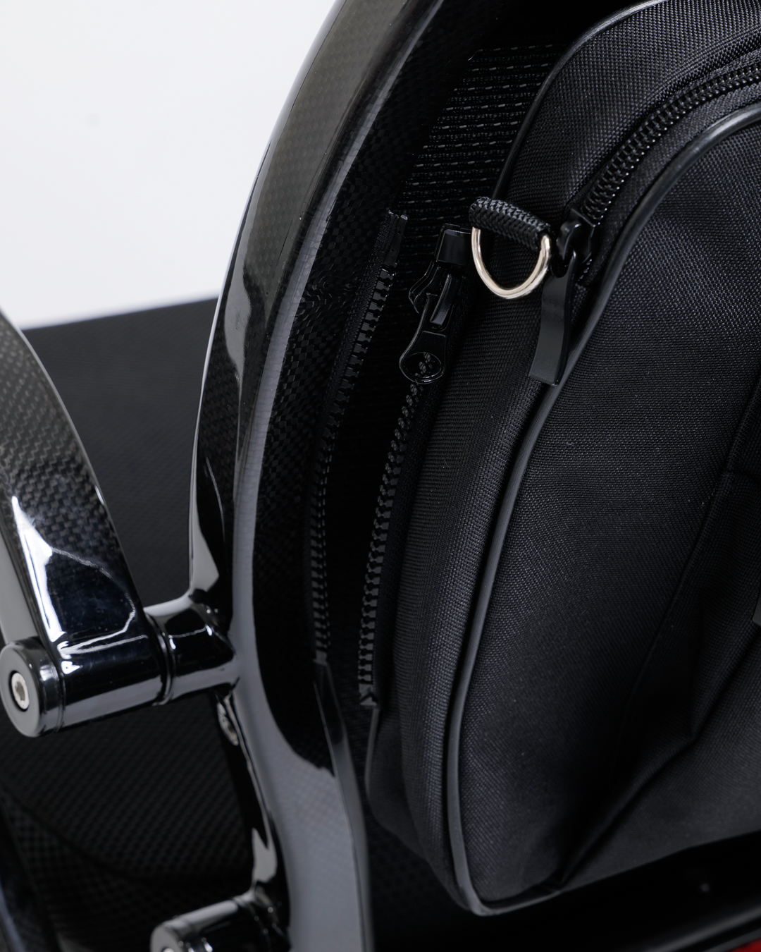 Dit model heeft een slimme en stijlvolle tas voor de rugleuning die eenvoudig met ritsen kan worden bevestigd. De tas is volledig afneembaar en kan worden getransformeerd in een praktische schoudertas met de bijgeleverde riem - perfect voor wie zowel functionaliteit als design zoekt!