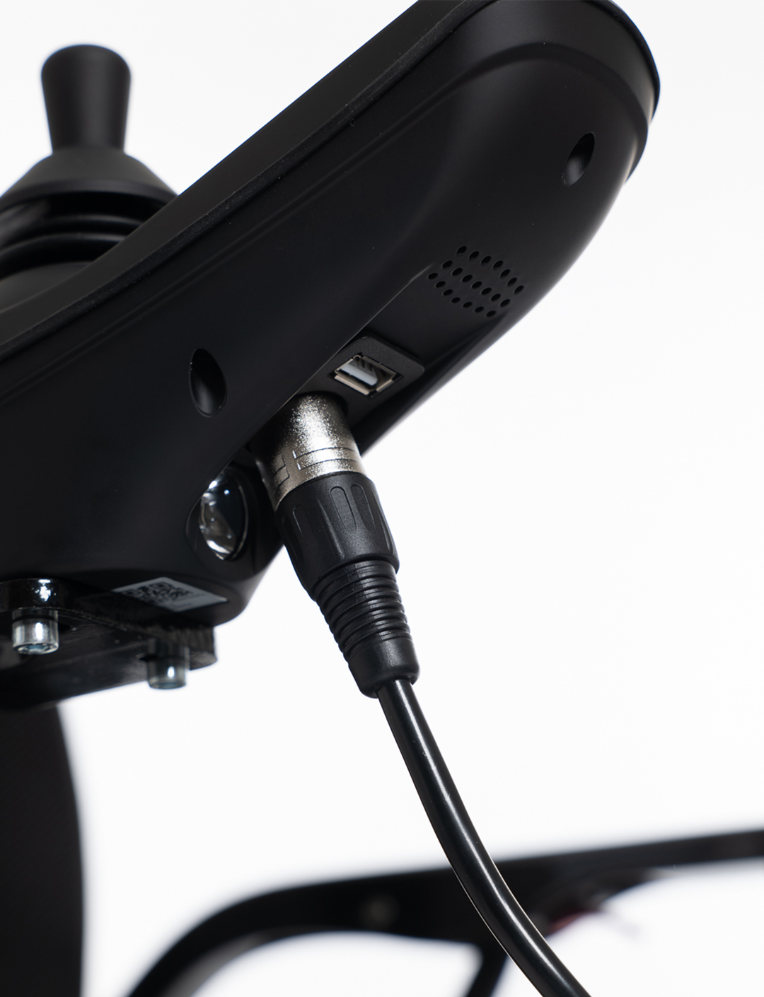 Onze slim ontworpen joystickbevestiging brengt u dichter bij de rand van tafels, wat de toegankelijkheid verbetert. De voetsteun kan gemakkelijk onder de zitting worden geklapt en de grote achterwielen met luchtbanden zorgen voor een comfortabele rit, zelfs op oneffen terrein. Met standaard twee accu's en ruimte voor een derde, is de actieradius tot 45 km ofwel tot 7,5 uur rijden op één acculading.
