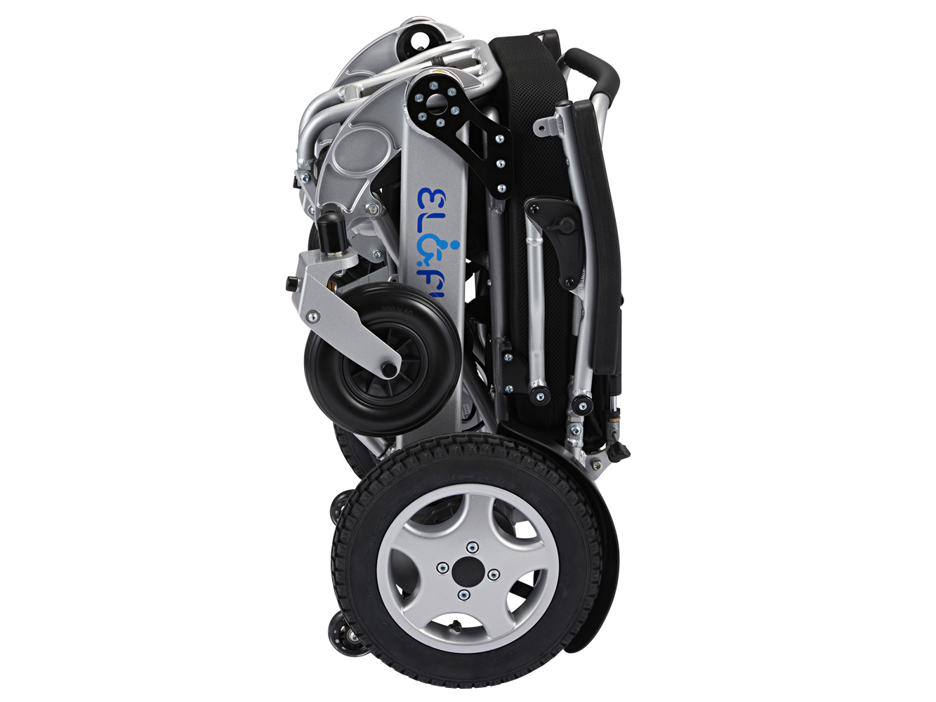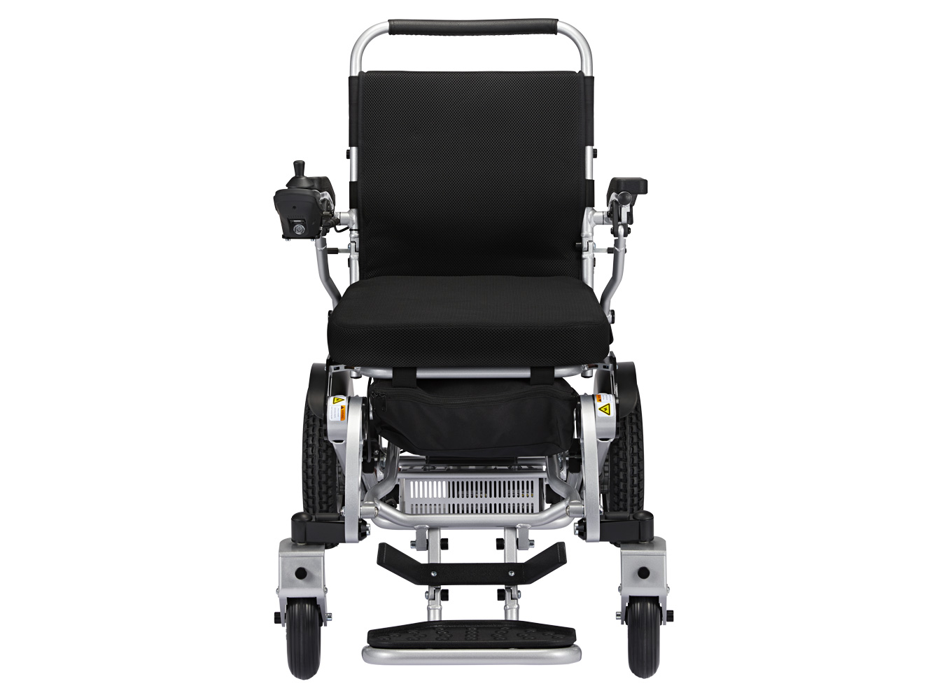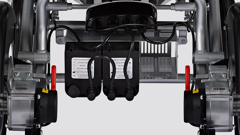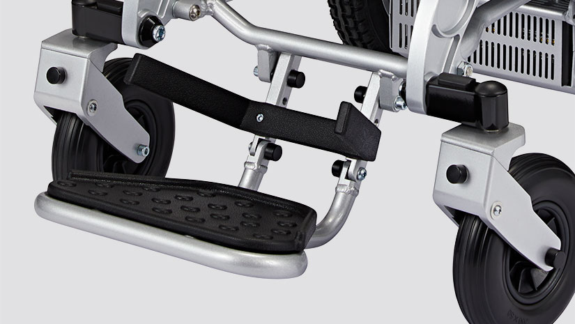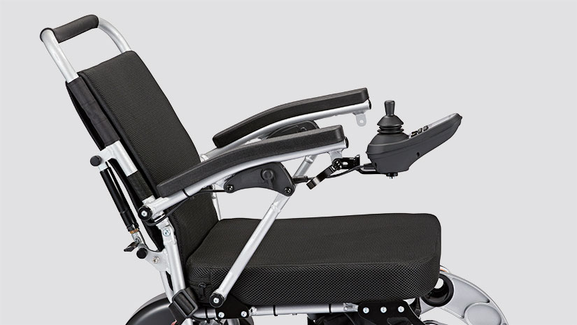 Er is veel aandacht besteed aan ergonomie en gebruiksvriendelijkheid. De slimme joystickbevestiging kan worden neergeklapt, zodat dichter bij de rand van de tafel kunt komen. De voetsteun kan netjes worden weggeklapt als u zit of gaat staan. Grote achterwielen met luchtbanden en verende voorvork zorgen voor een goede schokdemping op slechte wegen en paden.