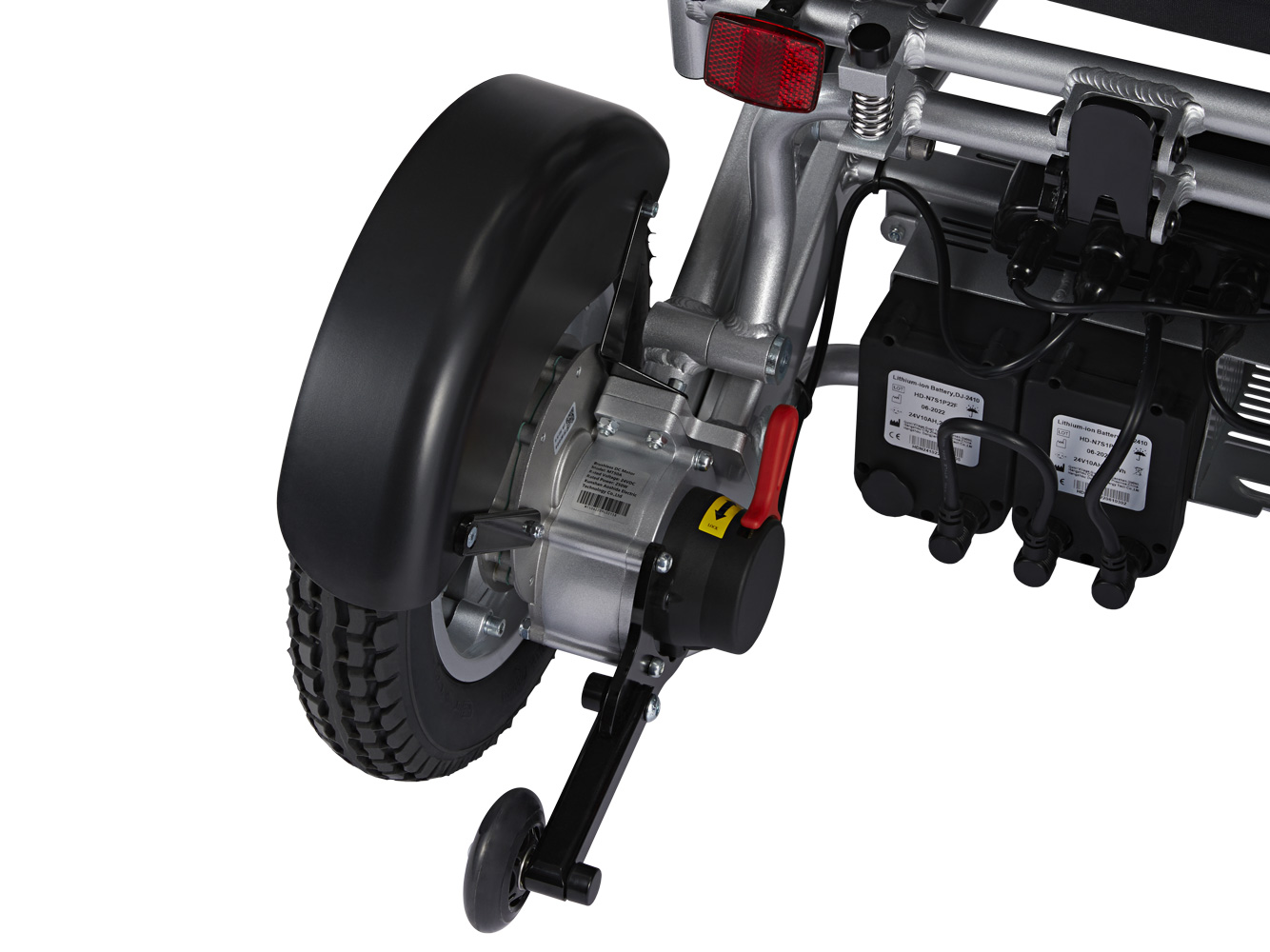 Dit model wordt geleverd met grote, 12-inch achterwielen met luchtbanden voor superieure grip en tractie op alle ondergronden. Of het nu bospaden of kasseien zijn, u zult genieten van een soepele en comfortabele rit.