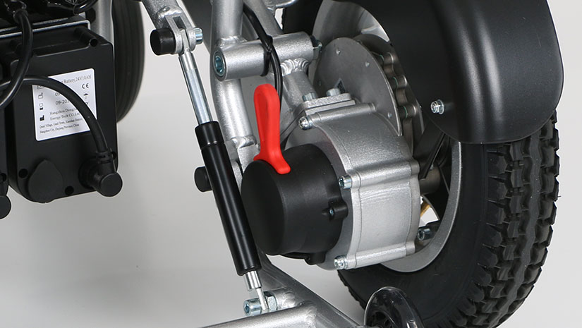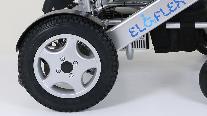 Dit model wordt geleverd met grote, 12-inch achterwielen met luchtbanden voor superieure grip en tractie op alle ondergronden. Of het nu bospaden of kasseien zijn, u zult genieten van een soepele en comfortabele rit.