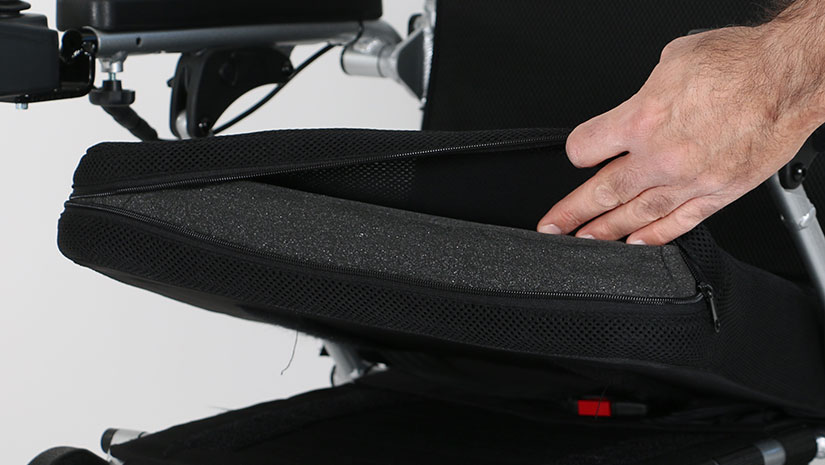 De afneembare rugbekleding en kussenhoes kunnen in de wasmachine voor maximale hygiëne. Onder de zitting vindt u een afneembaar accessoirevak voor het opbergen van bijvoorbeeld de lader en andere kleine spullen.