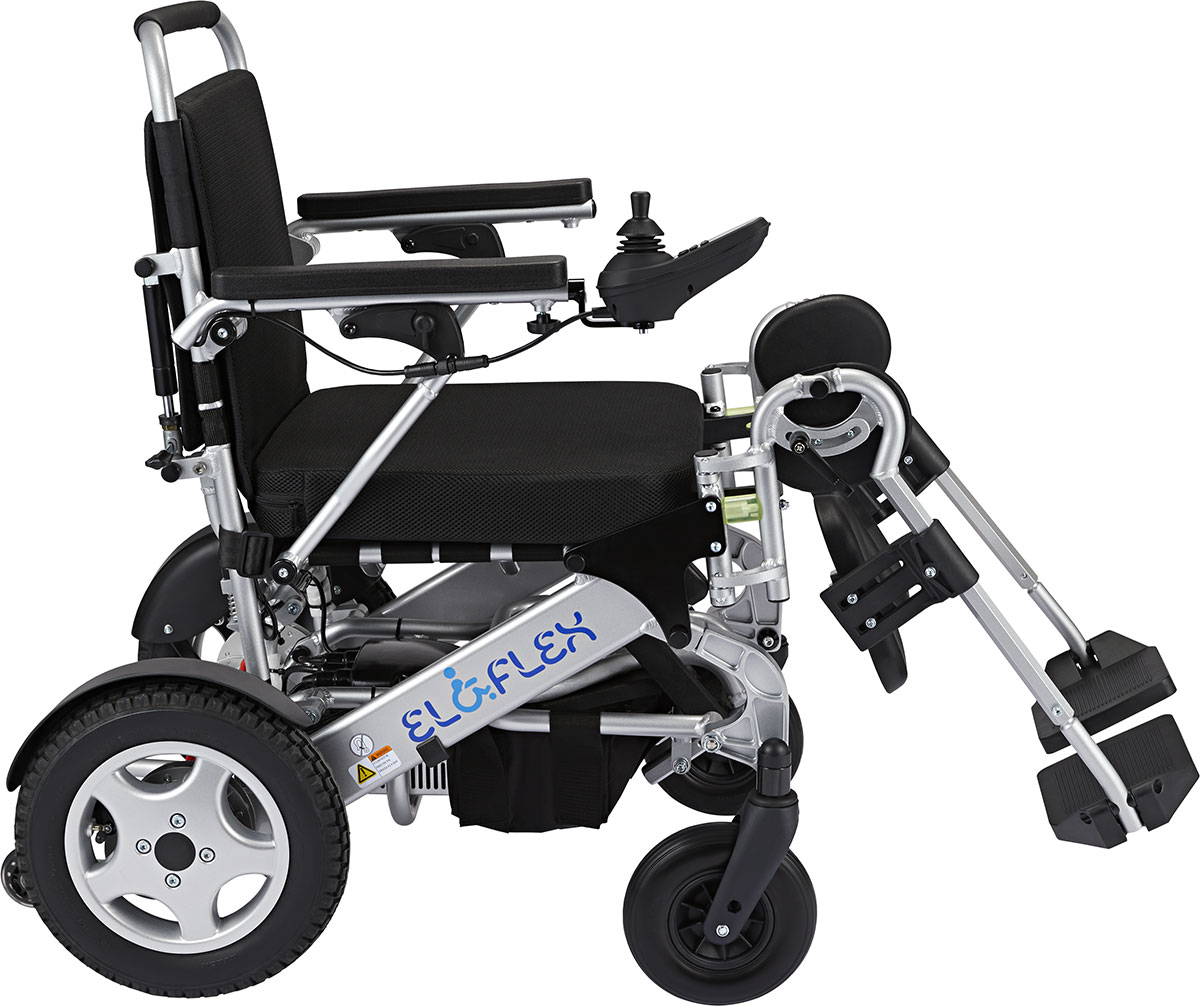 De Eloflex L is een compacte een eenvoudige elektrische rolstoel voor mensen die veel onderweg zijn. Dit model is eenvoudig op te klappen waardoor u hem gemakkelijk mee kunt nemen als u met de auto of het vliegtuig reist.