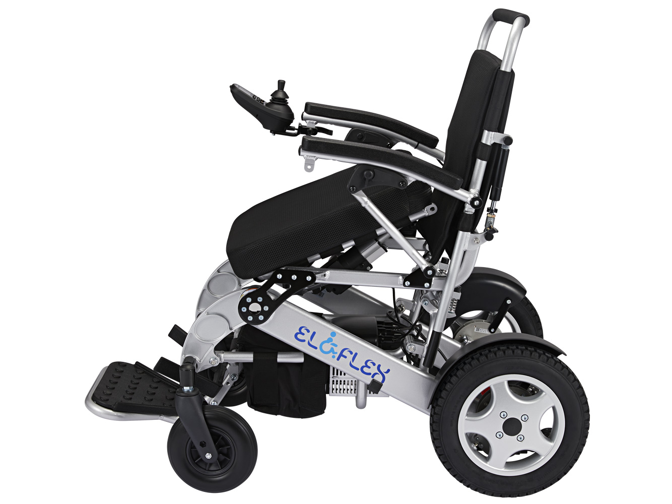 De opvallendste eigenschap van alle Eloflex-modellen is dat ze binnen enkele seconden eenvoudig kunnen worden opgeklapt. Dankzij het compacte ontwerp in combinatie met het lichtgewicht aluminium frame kan deze rolstoel gemakkelijk per auto of vliegtuig vervoerd worden.