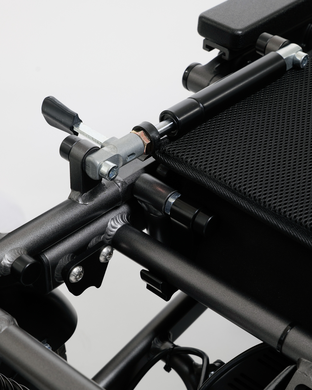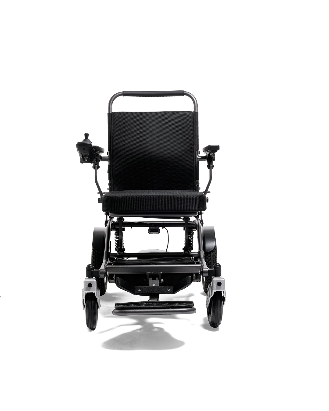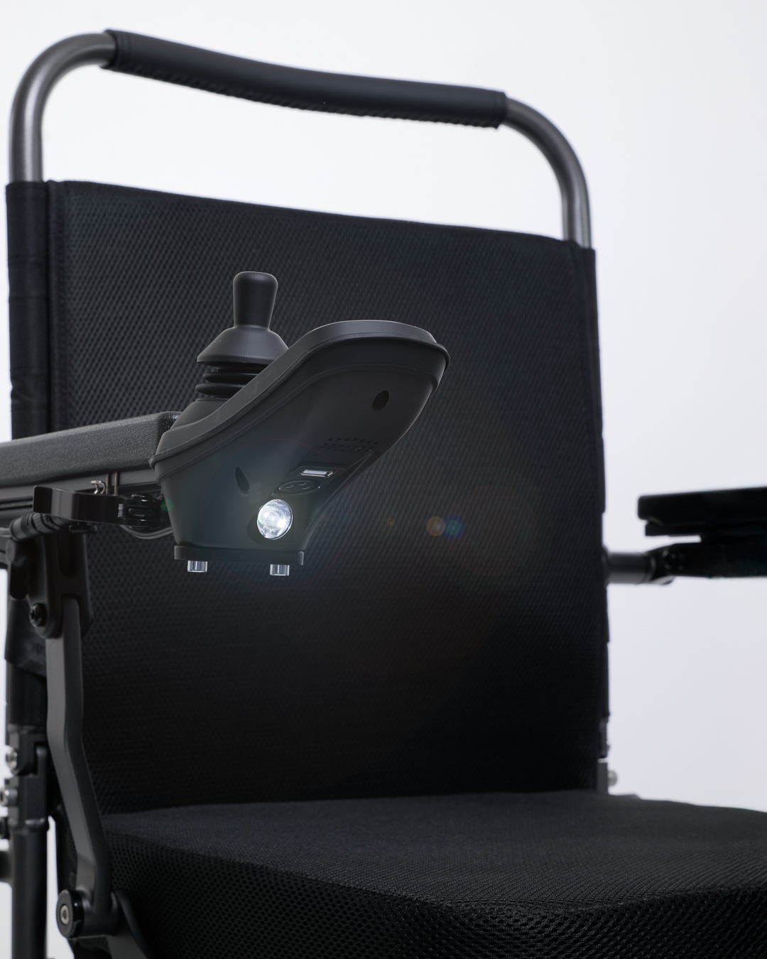 Verstelbare armleuningen en voetsteun zorgen voor een meer op maat gemaakte pasvorm, wat bijdraagt aan het comfort. Met drie batterijsleuven biedt dit model een langere gebruiksduur voor langere ritten. In opgevouwen toestand houdt een handig veiligheidsslot de rolstoel vergrendeld voor eenvoudig transport en opslag.