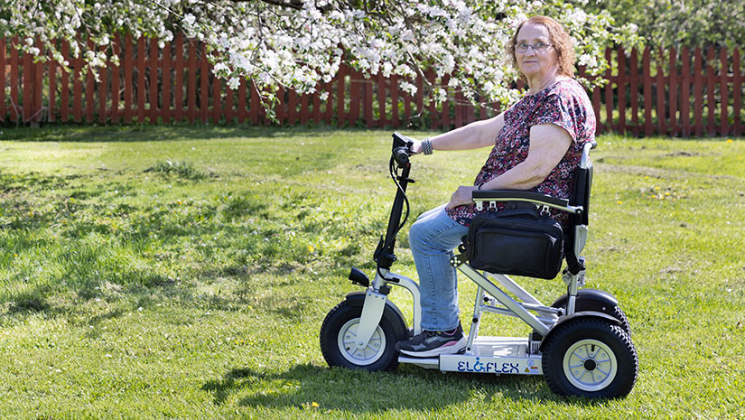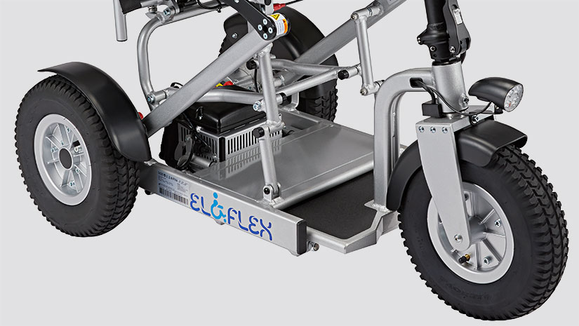 De zitting van de Eloflex S1 is in drie standen in hoogte verstelbaar, voor de meest comfortabele zithouding. Dankzij de verstelbare lengte kunt u ook de posities van het stuur bepalen. De wielen met luchtbanden dempen de schokken en trillingen van de grond tijdens het rijden.
