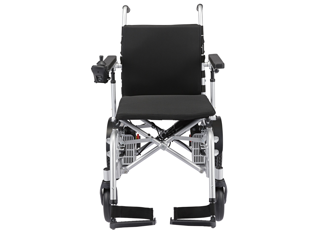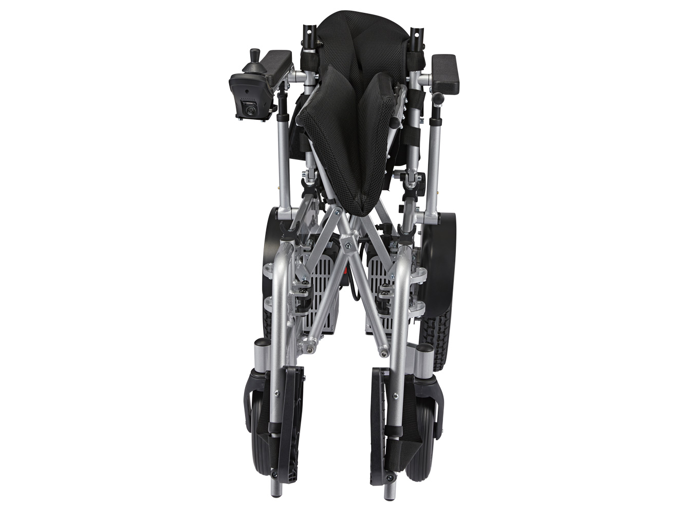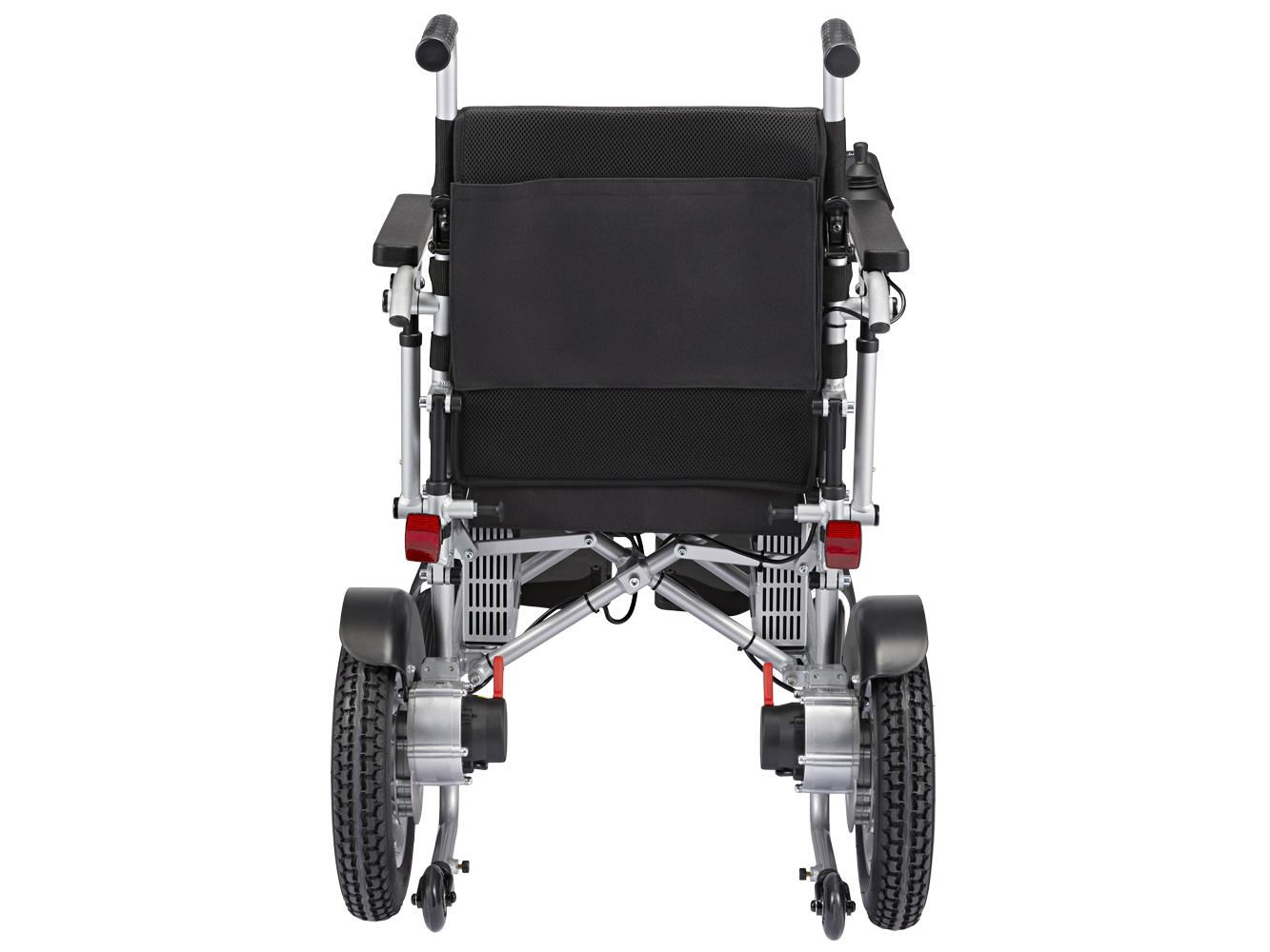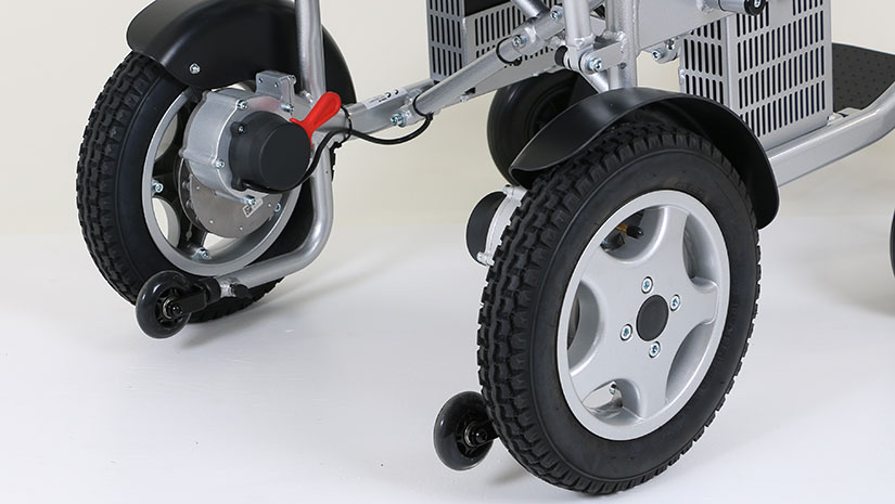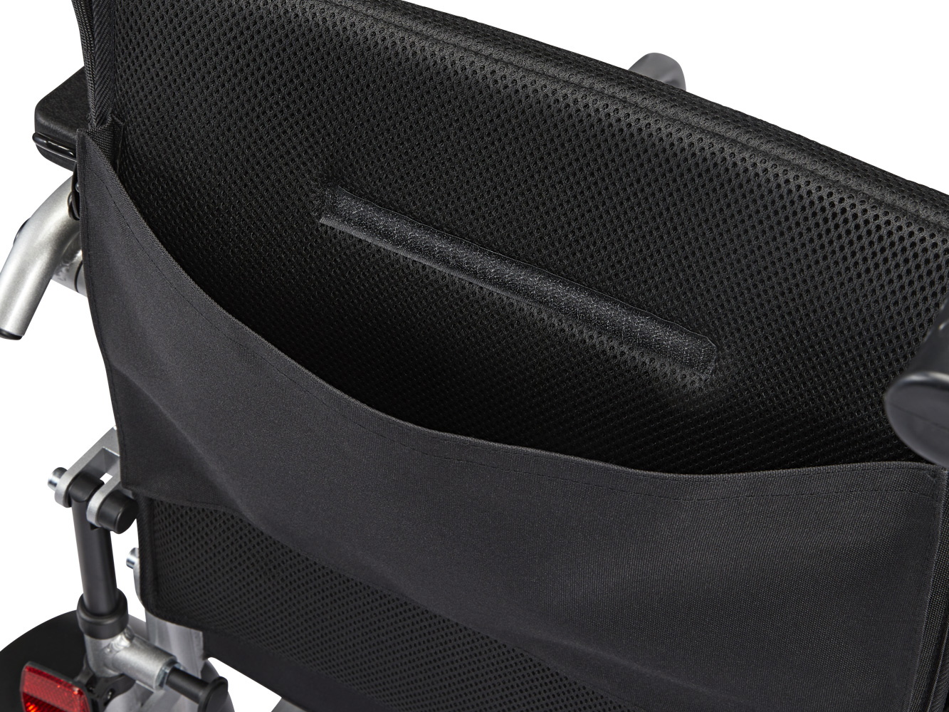 De klassieke rolstoelhandgrepen achterop maken het voor een familielid of verzorger gemakkelijk om de stoel met de hand te duwen. De handgrepen bieden ook uitstekende ondersteuning als gebruikers hun elektrische rolstoel als rollator willen gebruiken voor korte afstanden.