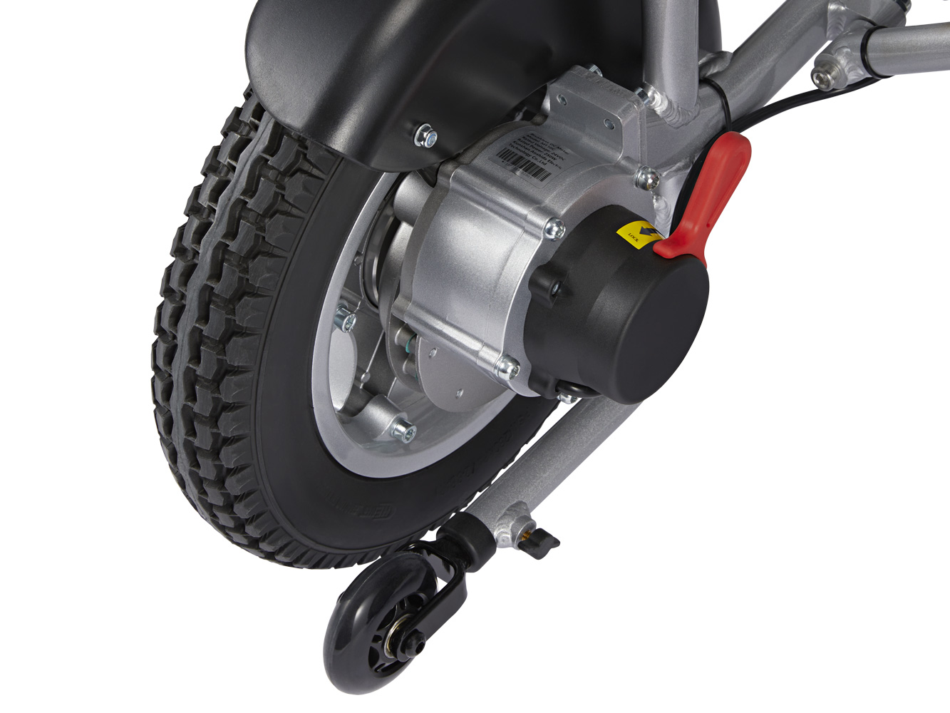 Dit model wordt geleverd met grote, 12-inch achterwielen met luchtbanden voor superieure grip en tractie op alle ondergronden. Of het nu bospaden of kasseien zijn, u zult genieten van een soepele en comfortabele rit.