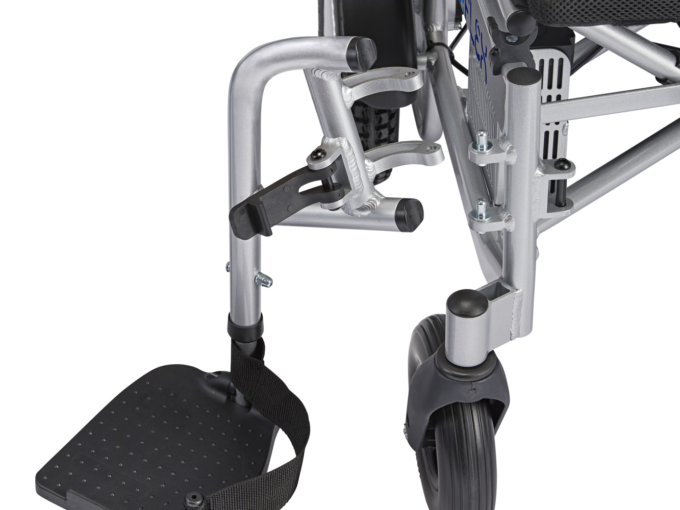 Voor een optimaal zit- en rijcomfort kan de stoel worden aangepast aan de wensen en eisen van de gebruiker. De zitting kan op 3 breedtes worden ingesteld, de hoogte van de voetsteunen kan worden aangepast en de armleuningen zijn in hoogte verstelbaar. De rugleuning kan in verschillende hoeken worden gekanteld, net wat uw voorkeur heeft.
